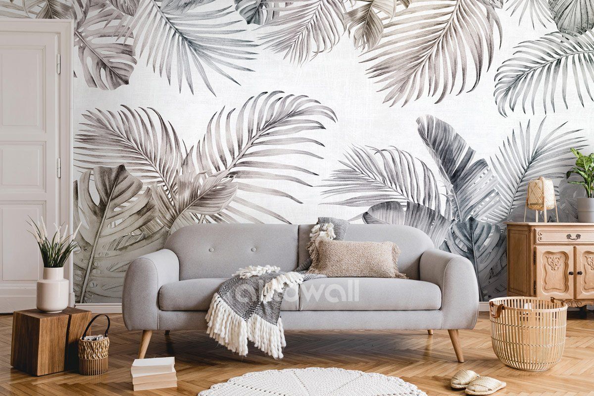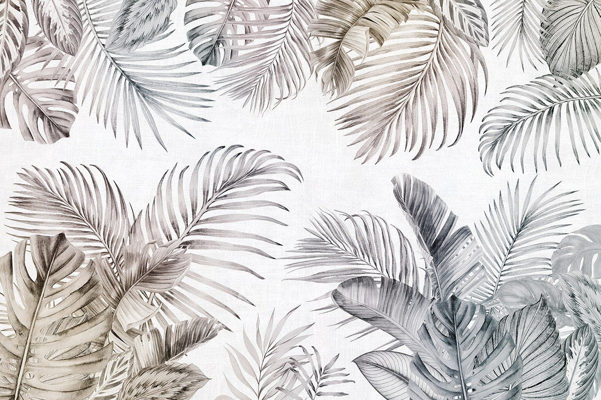 Хочется ненавязчиво добавить в интерьер тропические мотивы? Сюжет «Оазис-3» станет заметным и стильным, но не кричащим акцентом с пальмовыми листьями. Благодаря нейтральной цветовой гамме, эти обои подойдут и для спальни, и для кухни, и для гостиной.