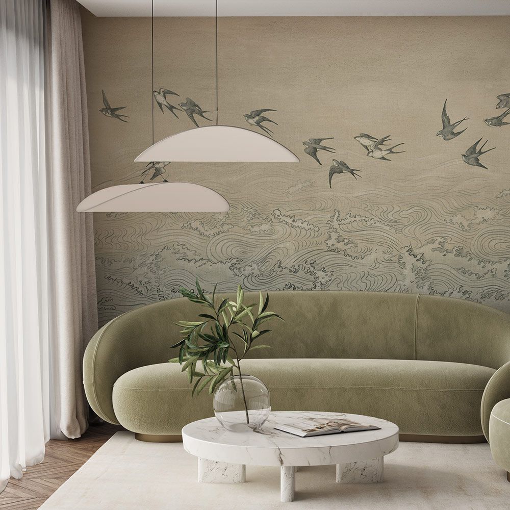 Волны. Танец воды и ветра. Восточная культура очень трепетна к природе. И если центральным мотивом для европейцев был человек, то для китайской культуры основным мотивом была природа — человек же не противопоставлялся ей, а был лишь её частью. Вы не найдёте в этой традиции реалистичных изображений волн — это скорее стилизация, и в каком-то смысле — осмысление и желание понять внутренние законы окружающего мира. Модель ONDA — это желание нашей художницы Кати соединить восточное восприятие мира и гравюрность, свойственную европейской традиции. Парящие над водой ласточки — это ветер, приводящий воду в движение и закручивающий её в ритм танца.