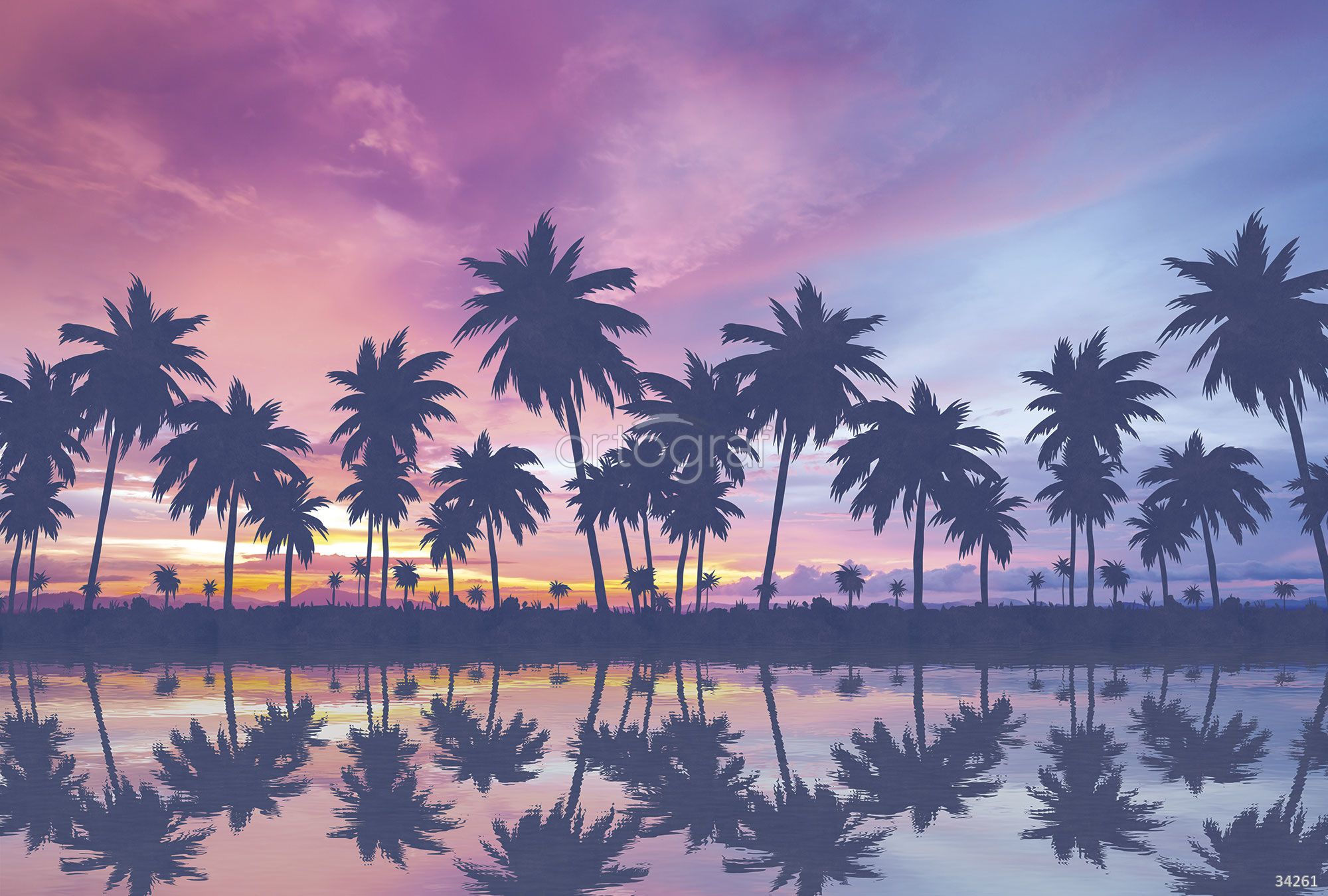 Силуэты пальм, отражающиеся в воде на фоне заката, создают атмосферу уюта, релакса и отдыха, визуально расширяя пространство и добавляя экзотические нотки интерьеру. Такой сюжет будет гармонично смотреться в современной гостиной, спальне или зоне отдыха, наполняя помещение мечтательной атмосферой отпуска. Подчёркивает индивидуальность и стиль, делая интерьер ярче и более динамичным.