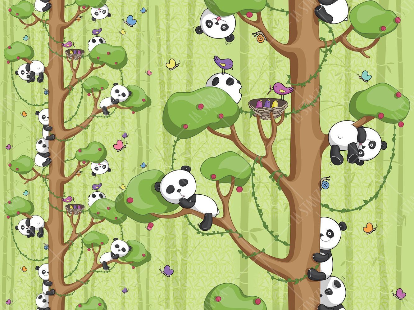 Фреска Пандочки и деревья на фоне бамбука