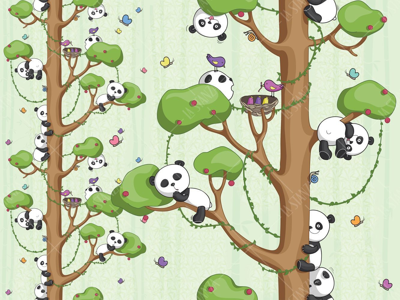 Фреска Панды на деревьях