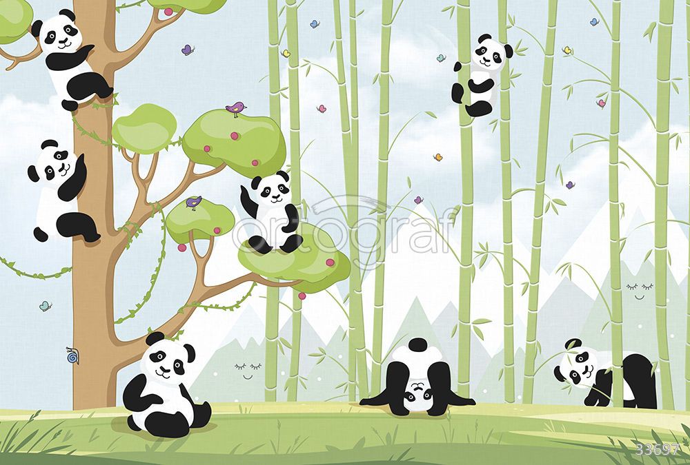 Забавные панды среди бамбука и деревьев создают атмосферу радости, тепла и игрового настроения. Такой сюжет отлично подойдет для оформления детской комнаты, наполняя пространство позитивом и побуждая к играм и фантазии. Рисунок станет яркой и уютной деталью в интерьере для самых маленьких.