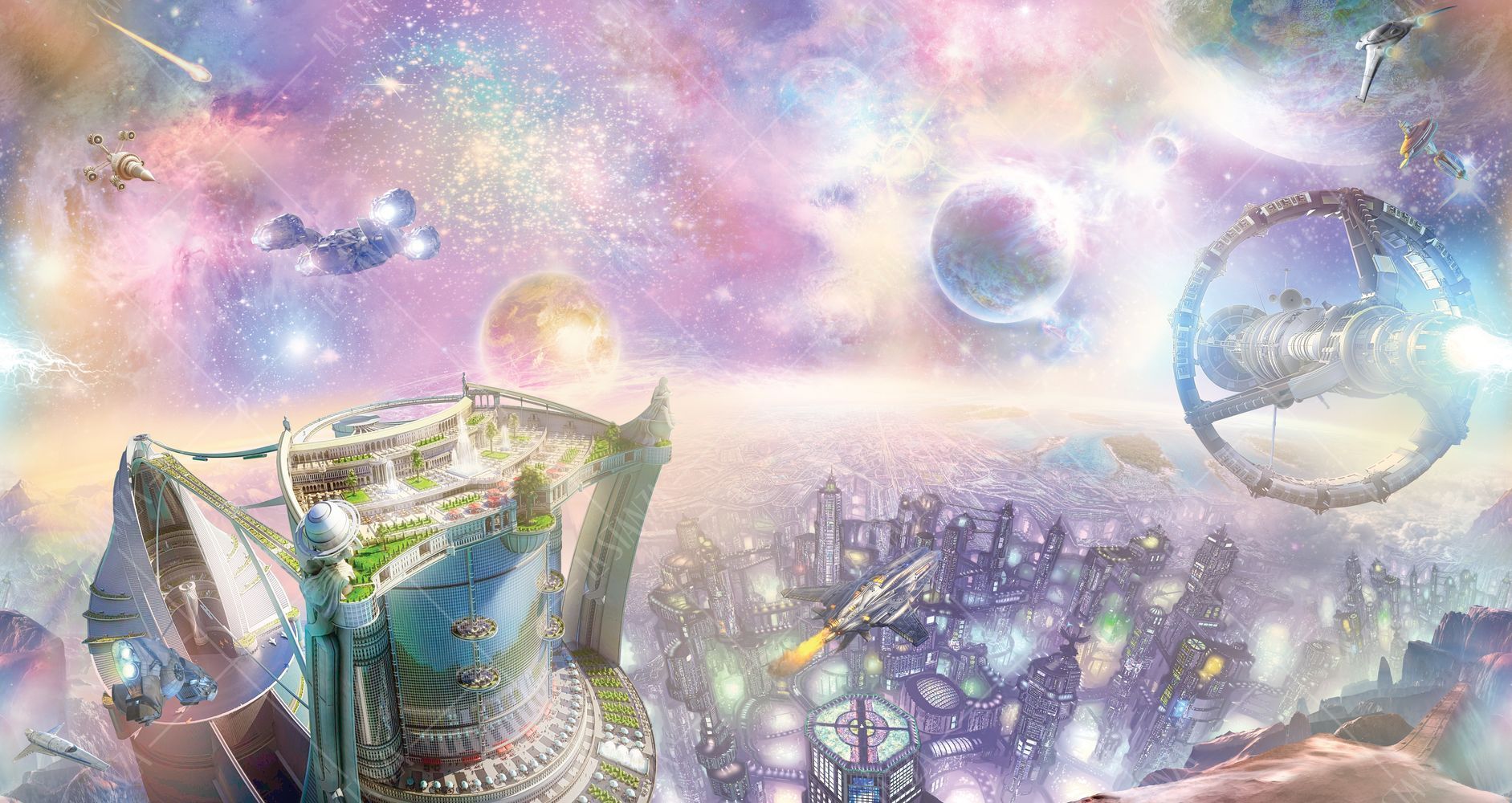 Фреска Панно космос и космический город