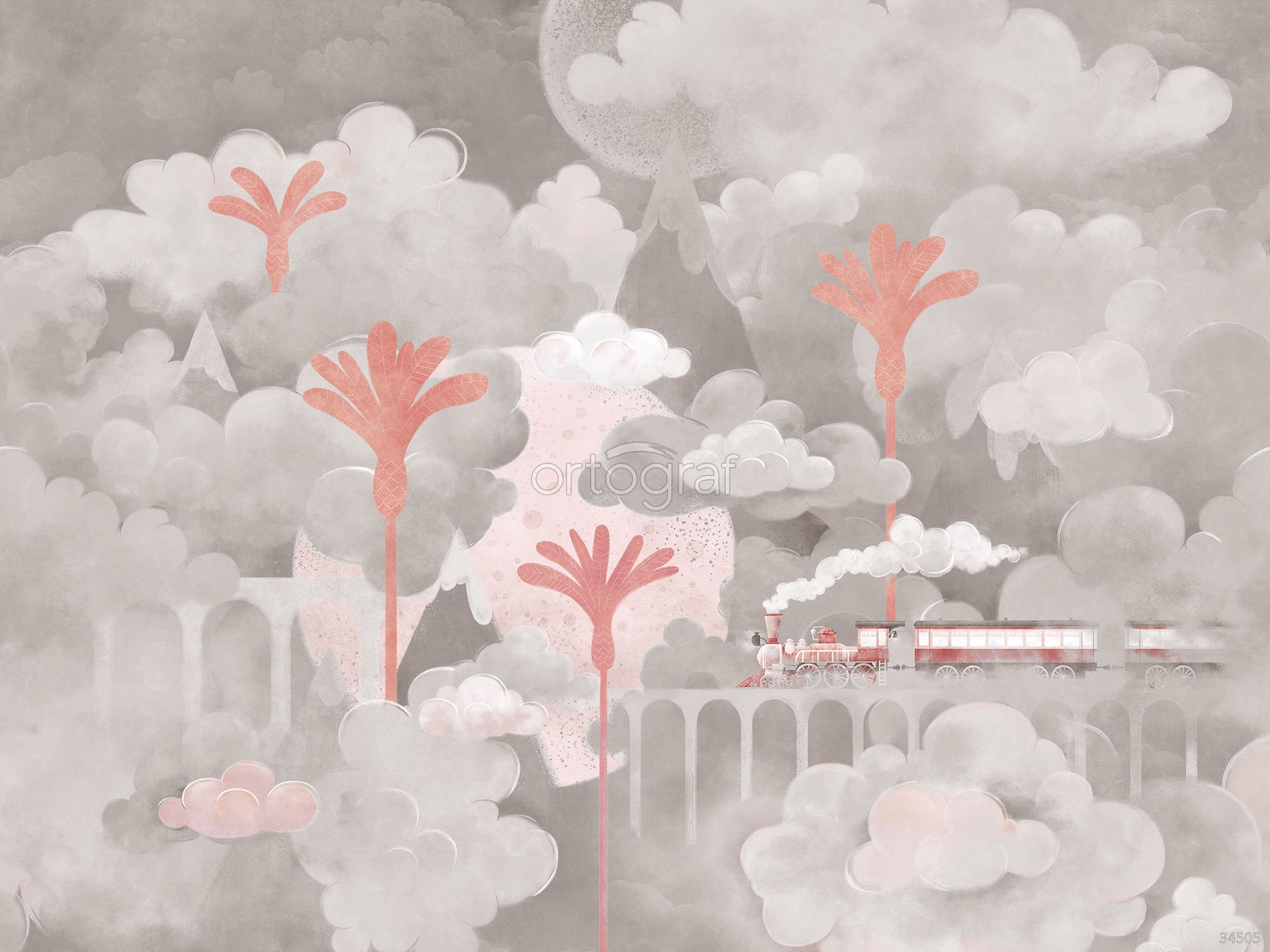 Сказочный рисунок с паровозом, пролетающим сквозь облака и необычные деревья, создаёт атмосферу волшебства и путешествий. Такой сюжет отлично поддерживает мечтательное настроение, добавляя интерьеру лёгкость и фантазию, вдохновляя на игры и воображаемые приключения. Изображение гармонично смотрится в пространствах, созданных для детской активности и отдыха.