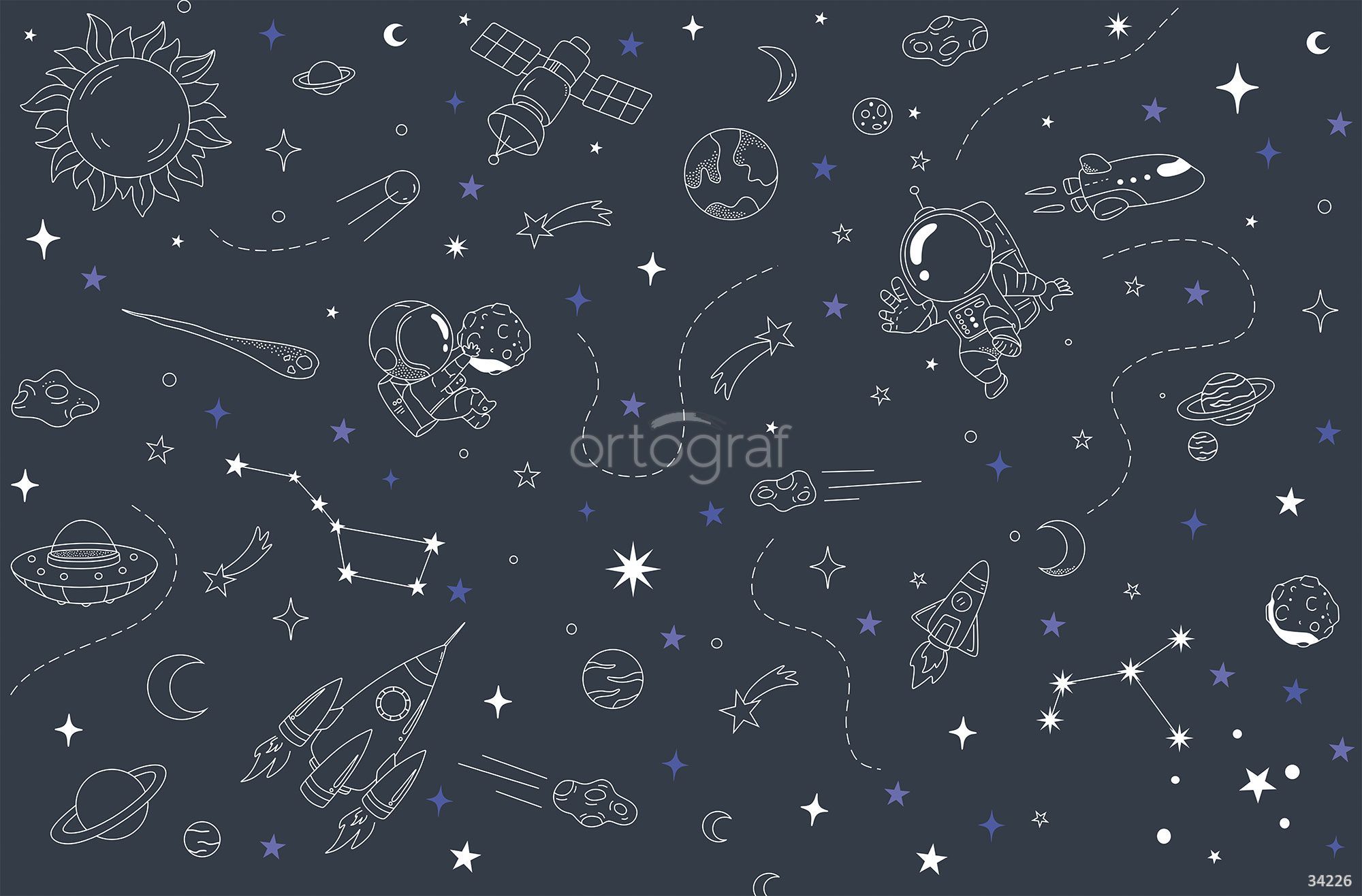 Сюжет с космонавтами, ракетами и планетами в стиле дудл создает атмосферу увлекательного путешествия по космосу и отлично вдохновляет на обучение и творчество. Такой рисунок добавит интерьеру игривости и поможет развивать интерес к науке, звёздам и исследованиям Вселенной. Особенно актуально для пространства, где важна фантазия и атмосфера мечты.