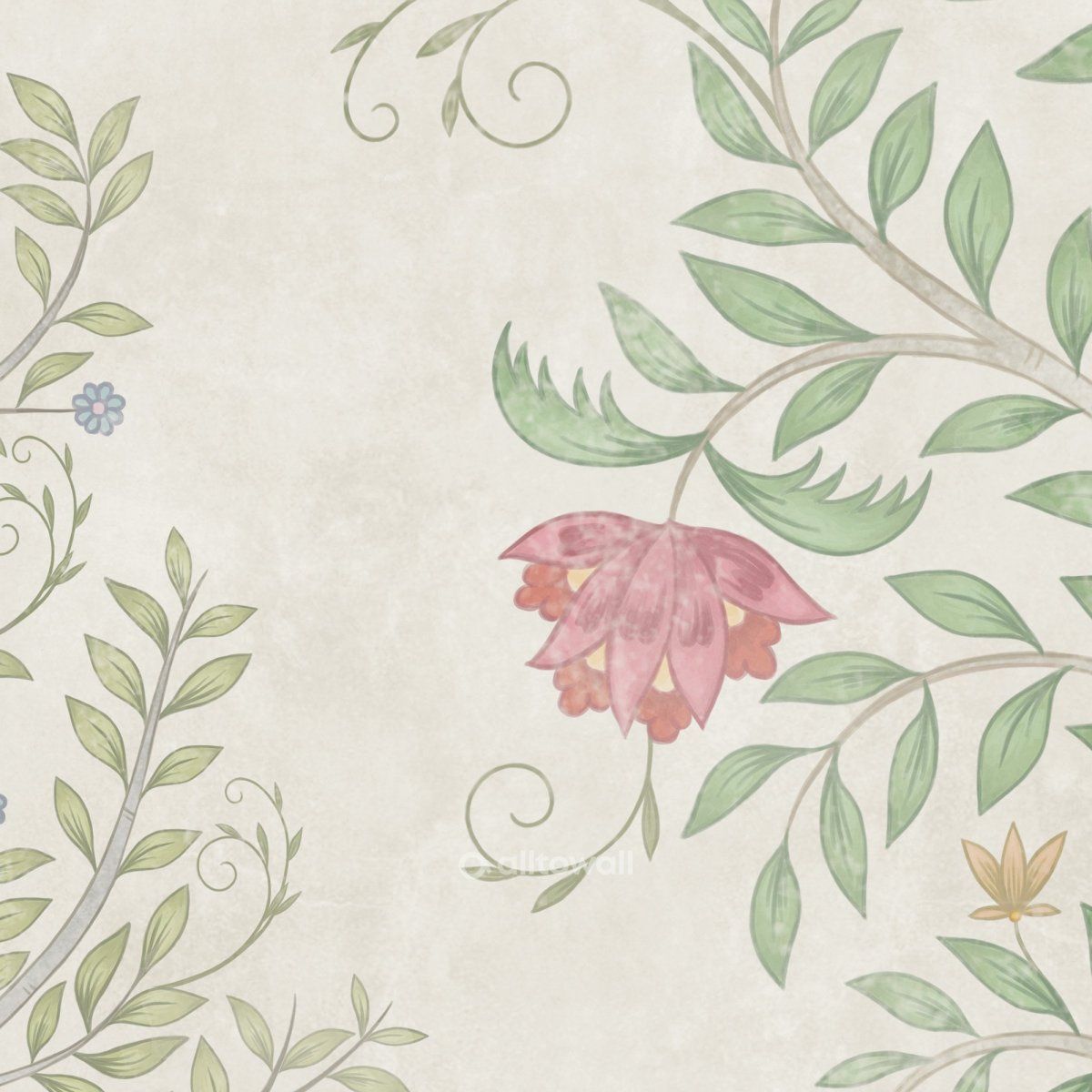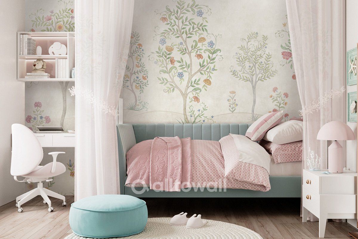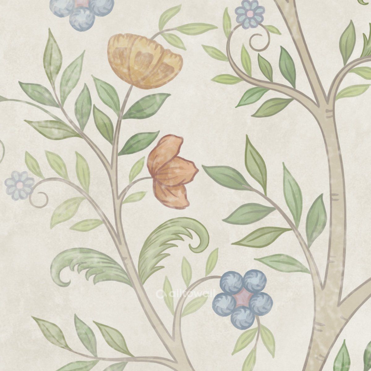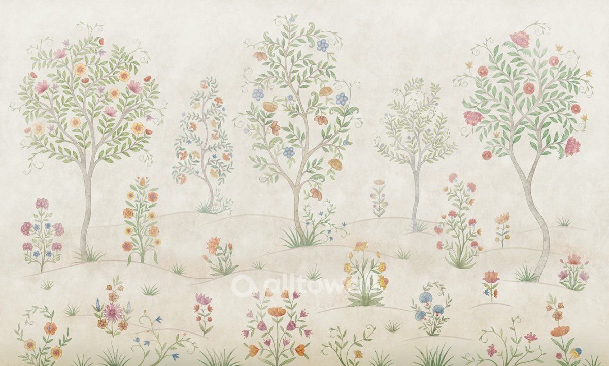Помните ли вы свой сборник русских народных сказок из детства? Красочный, в твёрдом переплете с позолоченными буквами на обложке. Мы вдохновились этими воспоминаниями и создали принт «Русский сад». Эти обои выполнены в стиле иллюстраций к любимым сказкам. Вместо молодильных яблочек на деревьях — цветы и ягоды, а рядом — фантазийные растения, которые будет интересно рассматривать. Сюжет «Русский сад» может украсить вашу детскую, игровую или спальню, создав уютную и сказочную атмосферу.