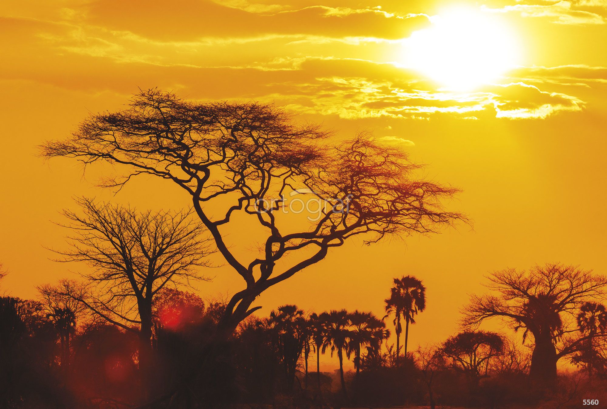 Африканский пейзаж с силуэтами деревьев и закатным солнцем передаёт атмосферу тепла, уюта и экзотики. Такой рисунок добавляет интерьеру яркость и эффект присутствия, хорошо подходит для создания расслабляющей или вдохновляющей атмосферы. Особенно гармонично будет смотреться в пространствах для отдыха или семейных встреч.