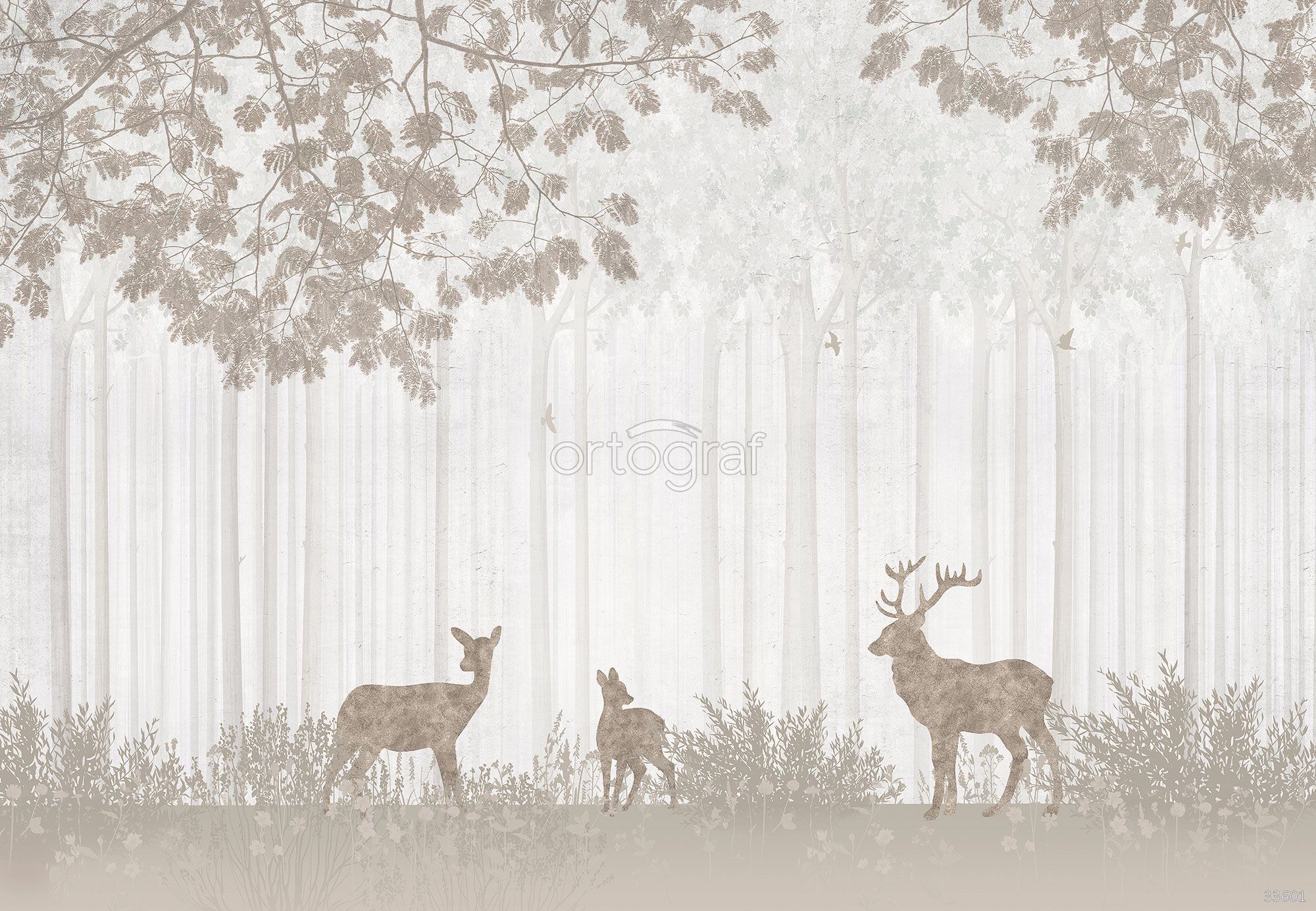 Нежная и спокойная композиция с силуэтами оленей на фоне светлого леса и невесомых ветвей создает атмосферу природы и уюта. Такой сюжет добавляет помещению ощущение гармонии, тишины и воздушного простора, отлично подходит для расслабляющих зон и оформления стен с природными мотивами. Идеально впишется в современный интерьер с акцентом на экологичность и спокойствие.
