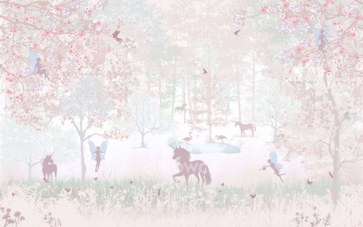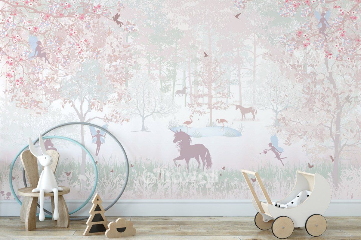 А вы верите в единорогов? Они и правда существуют! Не знаем, есть ли шанс встретить их в настоящем лесу, но в сказочном — вполне. Единороги, феи и розовые фламинго: детские обои от Alltowall» Сказочный лес единорогов-2» обрадуют маленьких принцесс и приятно удивят взрослых.