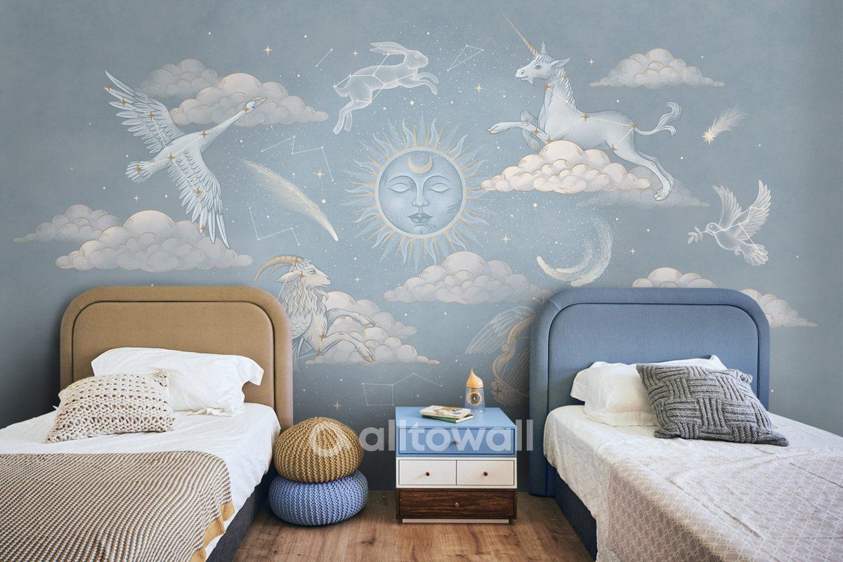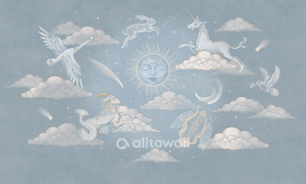 Пожалуй, каждый из нас легко найдёт в ночном небе созвездия Большой и Малой медведицы, а знаете ли вы, как выглядят созвездия Голубя или Зайца? Мы в Alltowall создали обои «Созвездия зодиака-1». Уютный и расслабляющий серо-синий цвет ночного неба, звёзды, облака, кометы и многое-многое другое. Этот сюжет можно рассматривать часами, каждый раз находя в нём что-то новое.