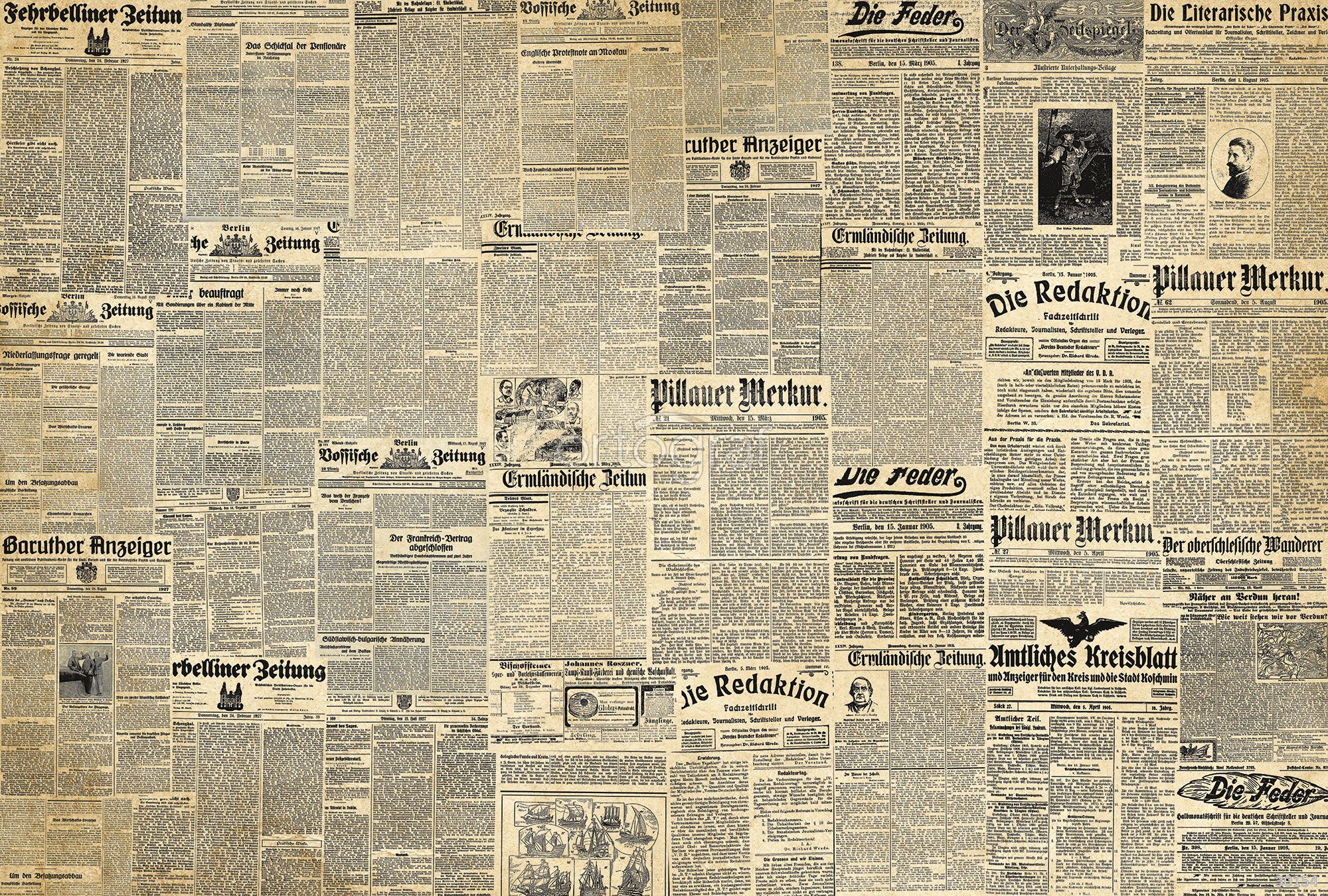 На изображении показан декоративный коллаж из множества газетных полос и страниц, располагающихся плотным фоном без выделенных объектов или героев. Композиция ассоциируется с потоком информации и создает впечатление исторического панно, напоминающего о газетной культуре и эпохе печатного слова.
