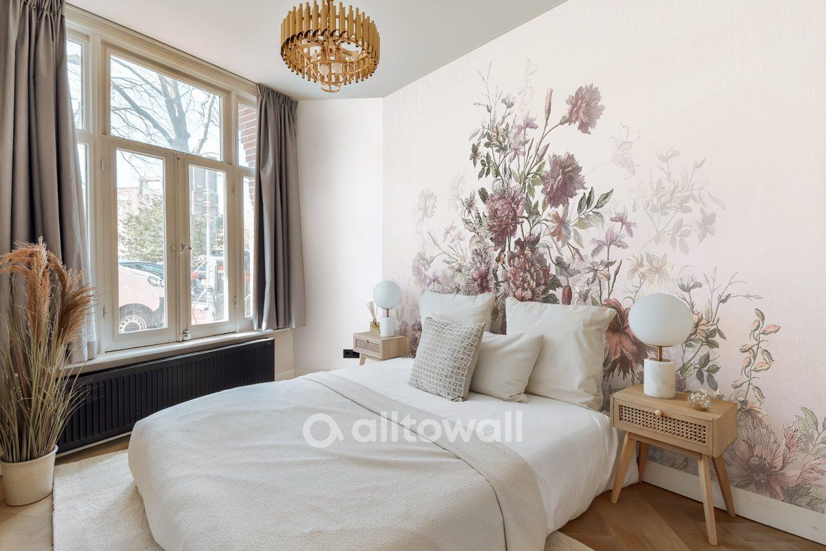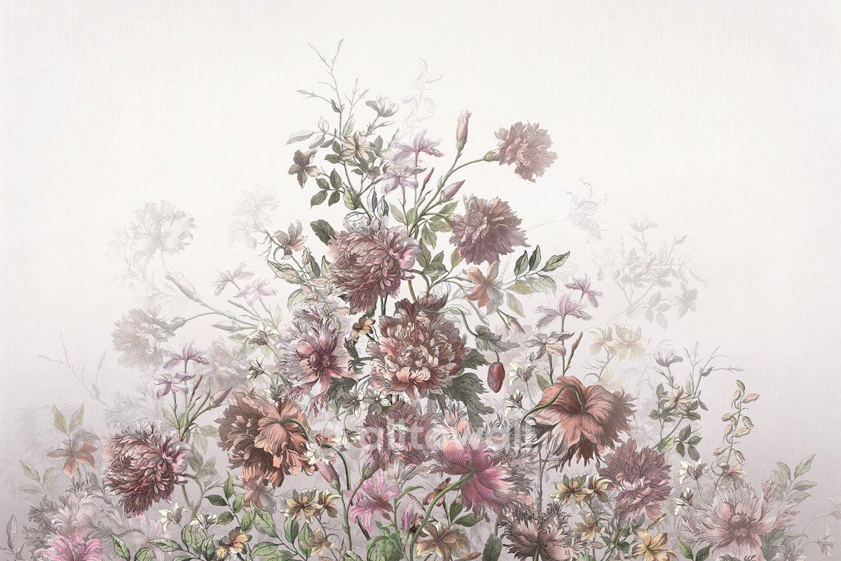 Обои с изящными цветами для спальни, гостиной или комнаты девочки. Сюжет «Венецианский букет» в пастельных и розовых тонах станет эффектным акцентом и поможет создать атмосферу летнего сада в вашем интерьере.