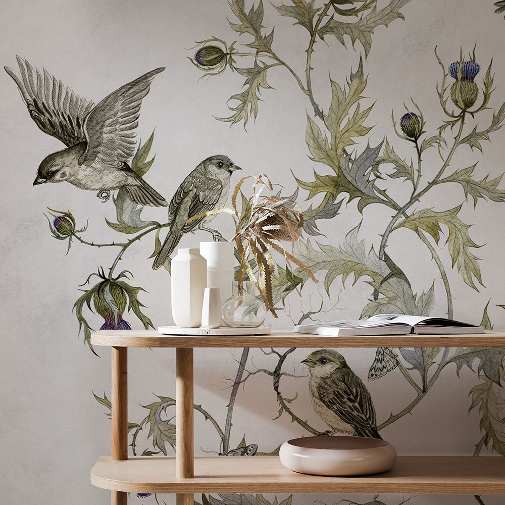 VIVALDI – изысканная модель обоев, переносящая нас в сказочно красивый восточный сад, наполненный чарующими звуками классической музыки. Основной сюжет – заросли чертополоха с парящими среди стеблей веселыми стайками воробьев и мотыльков. При взгляде на сценку возникает ощущение насыщенного аромата кофе, чудится утонченная атмосфера востока и нега. Кажется, что стоит только раздвинуть веточки чертополоха, и откроется новый, дивный мир.