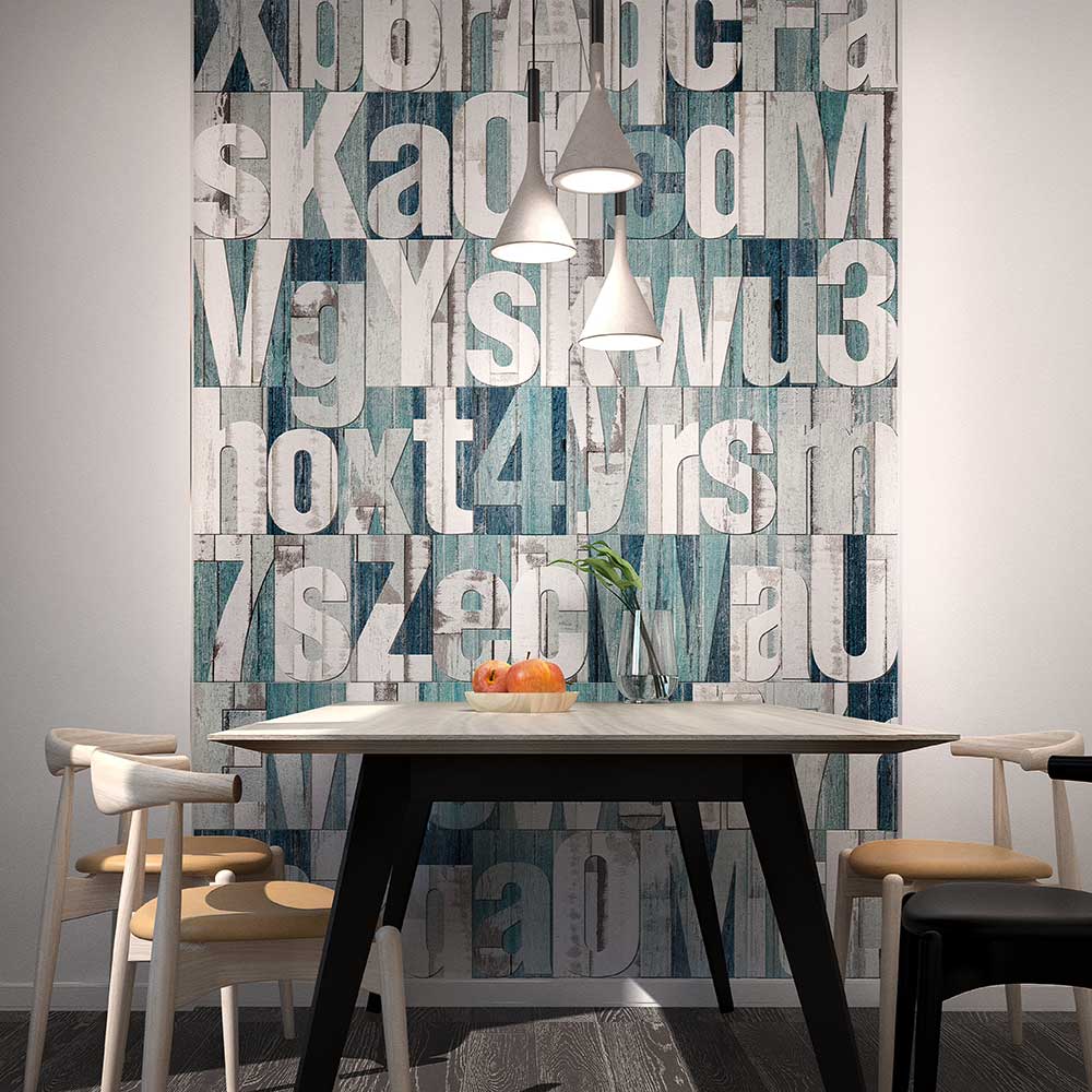 WOOD ALPHABET – идеальное решение для современной гостиной в урбанистском стиле. Основной сюжет – жесткие и крупные буквы на фоне неровно окрашенной доски, что создает эффект глубины пространства. Подобное покрытие станет отличным выбором для гостиной в стиле Лофт или городская классика, оформления обеденной зоны на небольшой кухне или для квартиры-студии.
