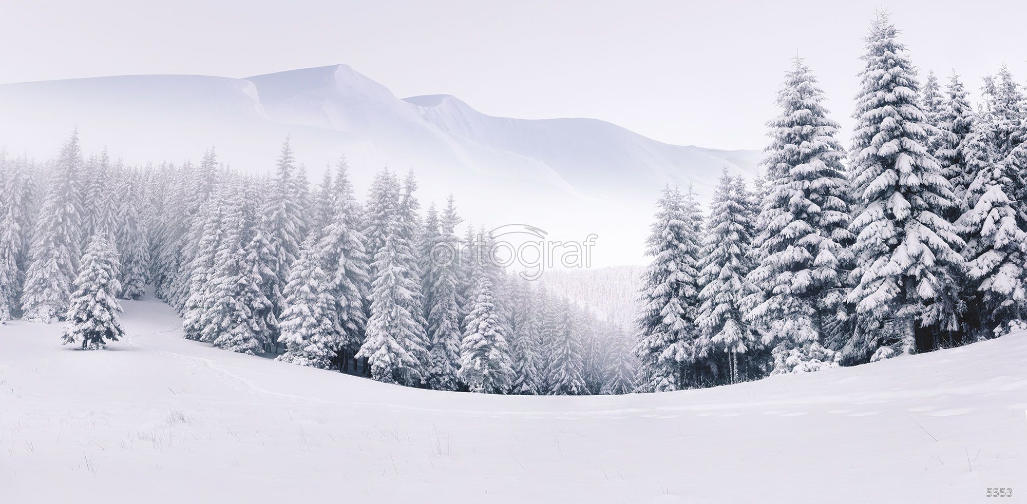 Пейзаж с заснеженным лесом и горами создаёт ощущение покоя, свежести и простора, наполняя интерьер атмосферой зимней гармонии. Такой рисунок добавит в помещение умиротворение и поможет визуально расширить пространство, особенно хорошо подходит для создания светлой и спокойной обстановки. Универсален для оформления различных комнат в современном стиле.