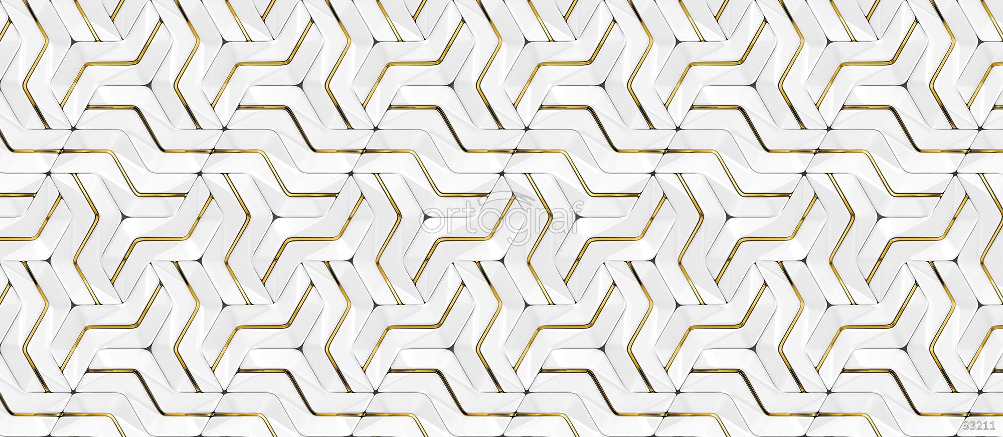 На изображении представлен современный геометрический орнамент из переплетённых объемных и рельефных элементов, дополненных тонкими глянцевыми линиями. Такой рисунок придает интерьеру динамику, стиль и ощущение глубины, отлично подходит для минималистичных и современных пространств.