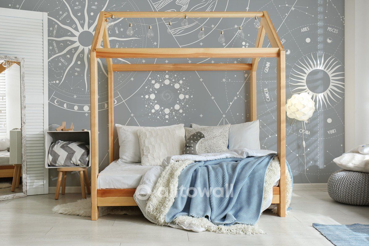 Звёздное сияние-2 – лёгкие серые оттенки и россыпи сверкающих серебряных звёзд преобразят интерьер, придадут ему больше загадочности и тайны. Такая модель станет отличным выбором для спальни ребёнка, создающим таинственную атмосферу глубин космоса. Центральный элемент – сверкающее серебряное солнце, лучи которого притягивают к себе взгляд и задают общий тон.