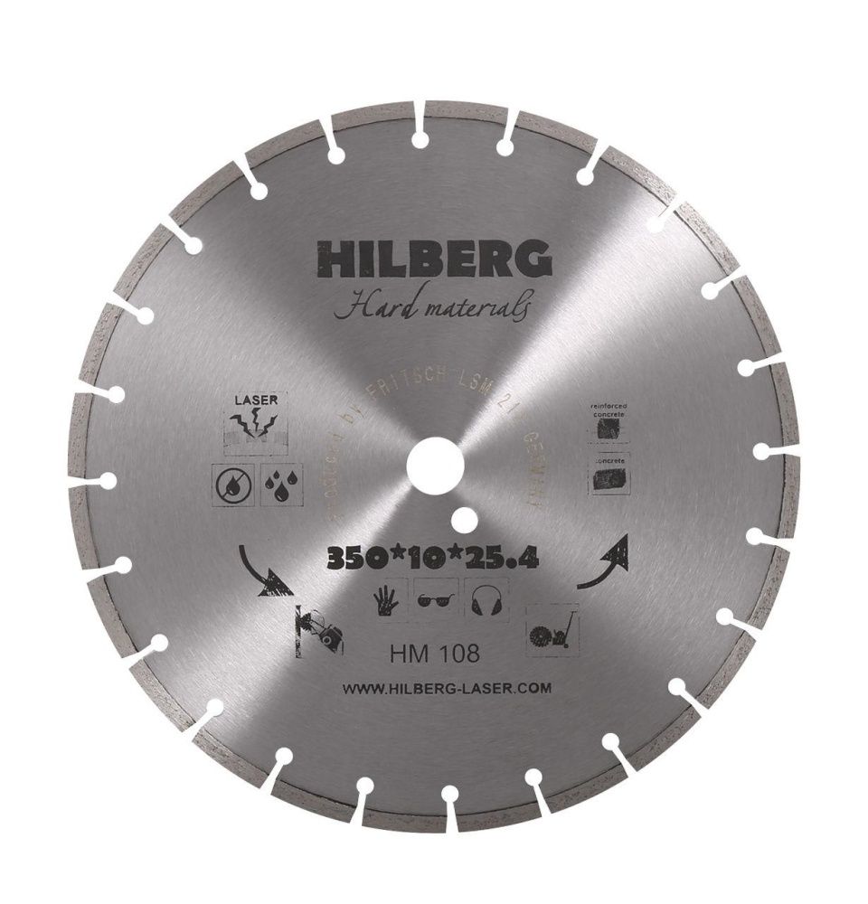 Диск алмазный Hilberg Hard Materials Лазер 350*10*25.4/12 mm Hilberg серия Hard Materials Laser Назначение: армированный бетон, железобетон, твердый бетон, бетон, огнеупоры, гранит. Особенности: все диски данной серии произведены на немецком оборудовании Dr. Fritsch методом лазерной наварки сегментов. Подтверждены сертификатом соответствия системы менеджмента качества требованиям ISO 9000, а также многочисленными дипломами и благодарственными письмами. Технология производства: Лазерная наварка