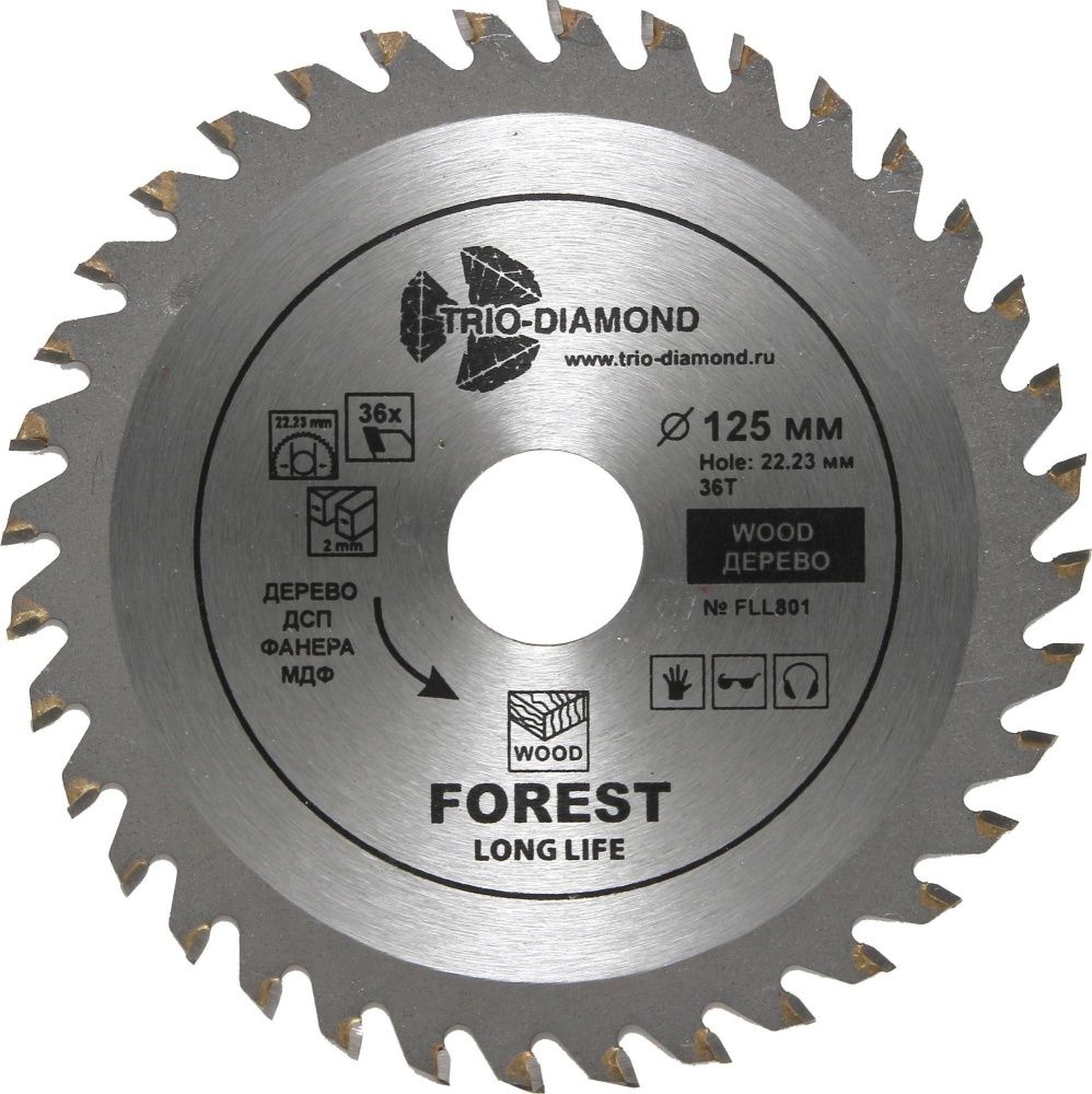 Диск пильный TRIO-DIAMOND серия Forest 125*36T*22.23/20 mm Назначение: дерево, ДСП, фанера.