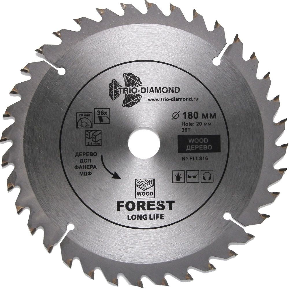 Диск пильный TRIO-DIAMOND серия Forest 180*36T*20/16 mm Назначение: дерево, ДСП, фанера.