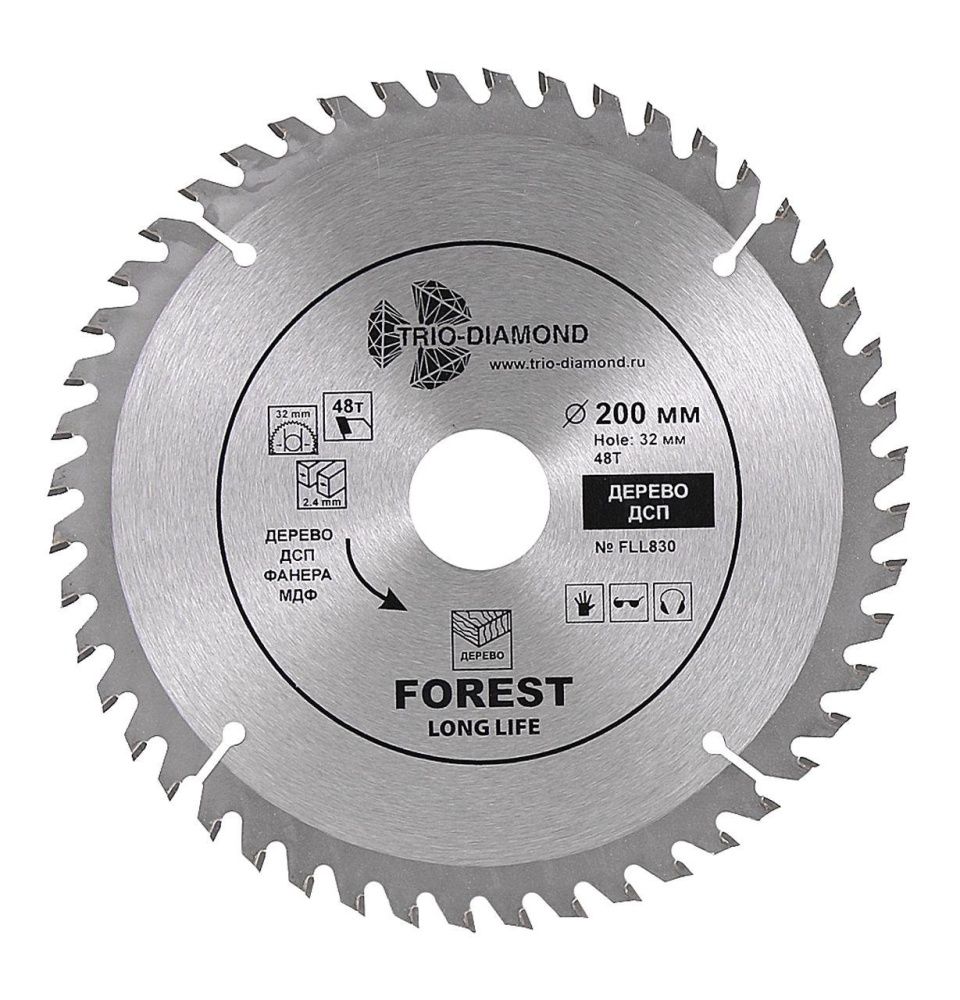 Диск пильный TRIO-DIAMOND серия Forest 200*48T*32/30 mm Назначение: дерево, ДСП, фанера.