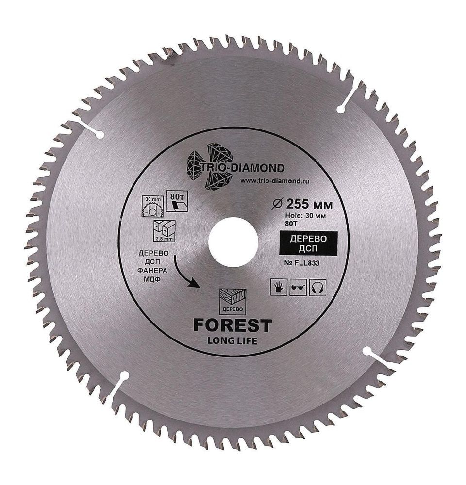 Диск пильный TRIO-DIAMOND серия Forest 255*80Т*30/20 mm Назначение: дерево, ДСП, фанера.