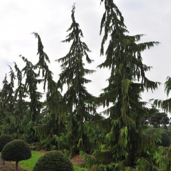 Плакучее дерево с прямым стволом и конической густой кроной, поникающими ветвями, высотой до 10–15 м . Хвоя тёмно-зелёная. Шишки одиночные, почти шаровидные, до 1 см в диаметре, тёмные с голубоватым налётом, созревают на второй год.