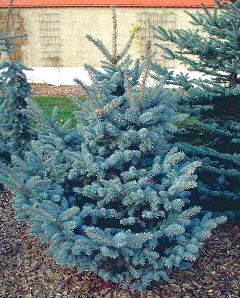 Ель Ольденбург — растение с серо-голубым цветом хвои. Особенностью этого вида является эффект воскового налета на иголочка. Крона конусо-видная, ветви растут ярусами.
