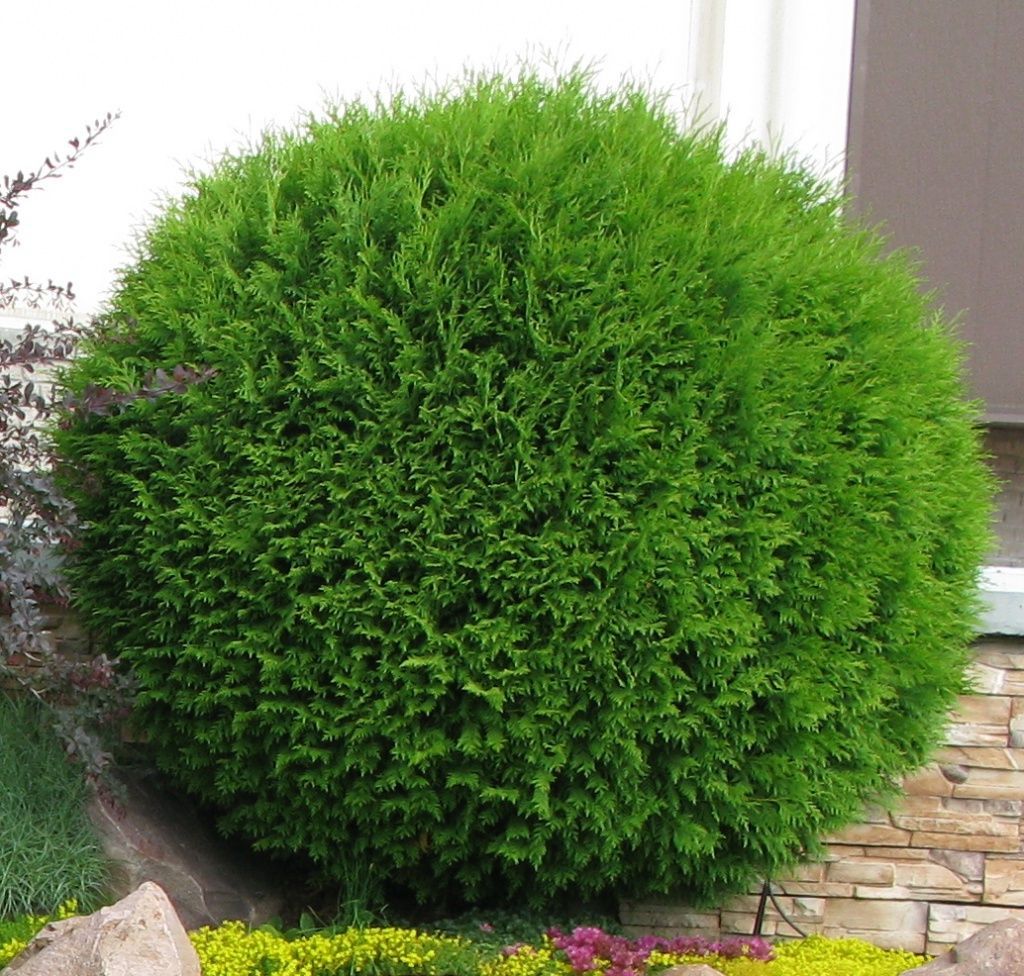 Туя Глобоза— карликовый декоративный хвойный кустарник с компактной округлой формой кроны. В зимний период хвоя серо-зеленая или коричневая, весной светло-зеленая, летом насыщенно-зеленая.