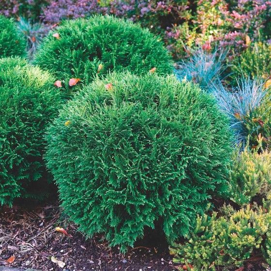 Туя Тини Тим миниатюрный карликовый кустарник, с высокими декоративными свойствами за счет насыщенного ярко-зеленого цвета и пышной шарообразной кроны. Можно использовать для создании природных бордюров, рокарив и как контейнерную культуру.