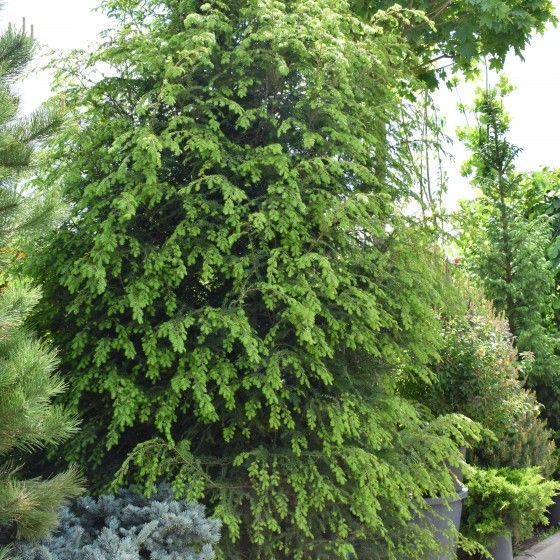 Карликовая медленнорастущая форма с поникающими ветвями, образующими воронковидную крону высотой до 1 м и до 1,5 м диаметром. Хвоя светло-зелёная с ярко-зелёными приростами. Используется в малых садах. Относительно зимостойка. Может повреждаться морозами и холодными зимними ветрами, вызывающими иссушение, при посадке на солнечных местах (весенние ожоги), особенно у молодых растений. предпочитает свежие или влажные, хорошо дренированные, не слишком тяжёлые, богатые питательными веществами почвы, от кислых до нейтральных. Не выносит известковых. требует влажных местоположений, плохо переносит засуху и жару, чувствительна к загрязнению воздуха. Из-за неглубокой корневой системы ветровальна. Хорошо переносит стрижку.