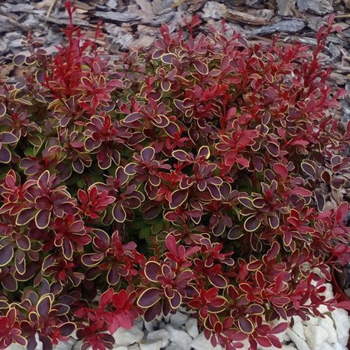 Барбарис тунберга Адмирейшн – это небольшой, очень компактный, декоративный кустарник. Его ярко-красные или насыщено-оранжевые листья, обрамляет четкая линия желтой каймы. Благодаря чему кустарник выглядит привлекательно на протяжении всего вегетативного периода.