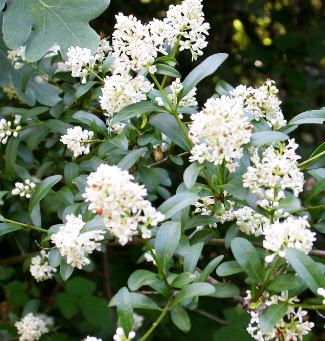 Бирючина – декоративное растение с зеленой листвой, которая опадает с наступлением морозов. Цветет кустарник мелкими цветками, собранными в соцветия длиной до 18 см. Плоды на бирючине держатся очень долго – вплоть до января.
