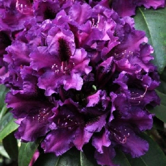 Рододендрон Азурро Компактный гибридный сорт с цветками насыщенного пурпурного оттенка, с фиолетовыми пятнышками и волнистыми лепестками. Высота до 1,1 м, крона шарообразная, до 1,5 м шириной. Цветение обильное, май-июнь.