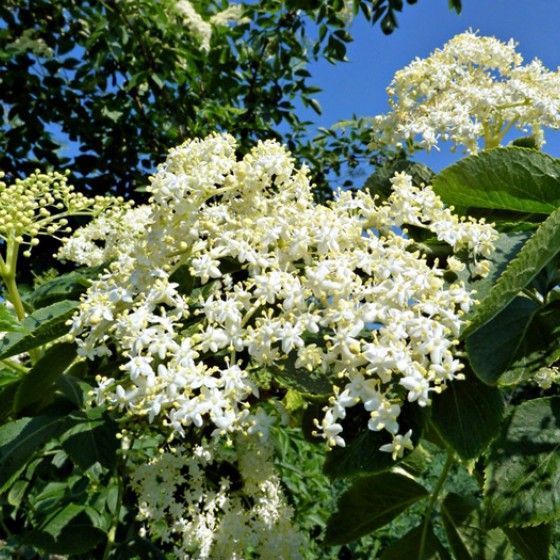 Бузина черная (Sambucus nigra) - кустарник крупный и пышный высотой до 10 м семейства Жимолостные. Может приобретать округлую форму. Крона густо облиственна и покрыта соцветиями до самого основания. Кора светло-серая с паутинообразной сеткой. Цветет бузина черная в конце июня - начале июля. Листья бузины черной супротивные, не парноперистые, зеленые, слегка удлиненные. Цветки бузины черной белоснежные, соцветия щитковидные, достигают 20 см в диаметре. Ягоды бузины черной фиолетово-черные, блестящие, созревают в начале сентября. Листья, корни и кора бузины черной ядовиты в больших дозах. Все части растения издают специфический запах. Бузина черная имеет множество декоративных форм и сортов: «Aurea» с золотисто-желтыми листьями,«Albomarginata» с белоокаймленной листвой, «Laciniata» имеет ярко-зеленые, узко изрезанные листья.