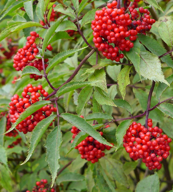 Бузина красная- листопадное древесное растение, известное своими красными плодами и характерным неприятным запахом листьев и цветков. Созветия белого цвета. Цветет в мае. Не требовательна к почвам, солнце полутенью. Засухоустойчива.