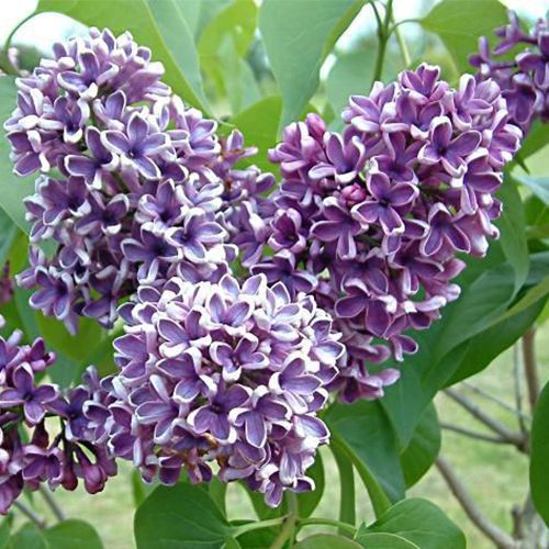Сорт с необычной окраской. Внутри цветки лавандово-фиолетовые, снаружи дымчато-серебристые, простые. Соцветия пирамидальной формы, поникающие как кисти винограда. Цветёт в ранние сроки.