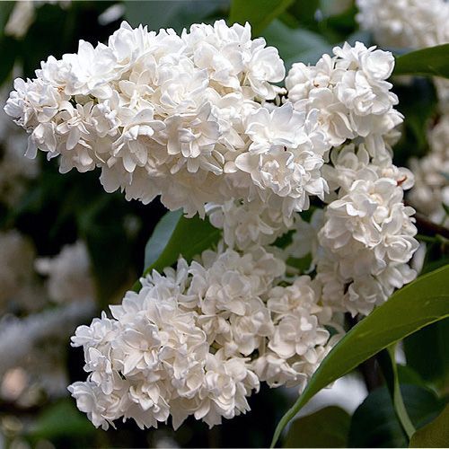 Белая прелестница, французская сирень Мадам Казимир Перье, была названа в честь жены премьер министра Июльской монархии. Если весна оказывается тёплой, то первые изящные, махровые цветки распускаются на Мадам Кзимир Перье раньше, чем у других сиреней, уже в конце апреля. Соцветия у этого сорта довольно крупные, но очень опрятные и плотные, состоят из нескольких пар широких пирамидальных метёлок. Цветки ароматные, грациозные, сплетены из 2-3 взъерошенных венчиков. Чисто белые лепестки тонкие и закрученные, их поверхность кажется отполированной, так ярко сияют на ней серебристые и жемчужные блики в ясный, солнечный день.