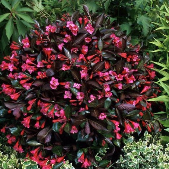 Вейгела цветущая Александра (Alexandra) – это изысканный декоративный кустарник, который станет настоящим украшением вашего сада. Этот сорт отличается компактной формой и густой кроной, достигая высоты до 2 метров. Листья вейгелы Александра имеют насыщенный темно-пурпурный оттенок, который сохраняется на протяжении всего сезона, придавая растению особую выразительность.