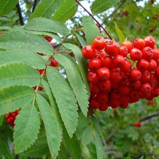 Рябина обыкновенная - Это небольшое дерево может в высоту достигает 10 м, имеет густую крону и гладкую серую кору. Молодые ветки растения имеют серовато-красный цвет, с большими пушистыми почками. Листья непарноперистые с несколькими парами неравномерно острозубых листочков продолговато-ланцетной формы. Цветки белого цвета, расположены в зонтичных соцветиях.