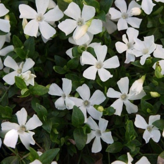 Изысканный, нежный сорт барвинка малого. Высота взрослого растения: от 10 до 20 см., в ширину барвинок может разрастаться: до 60 - 80 см. Листья блестящие, кожистые, вечнозеленые. Цветки белые. Цветёт обильно с середины мая по июнь (25 - 30 дней), а потом отдельные цветки могут появляться до сентября. Хорошо растёт и в полутени, и на солнце (на солнечном месте требуется более частый полив). Предпочитает дренированную, умеренно увлажнённую, плодородную почву с нейтральной реакцией pH. Не переносит очень сильное уплотнение почвы.