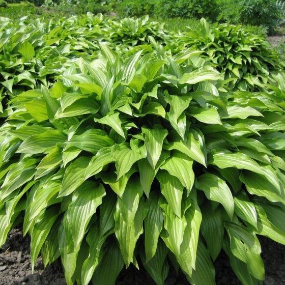 Хоста "Ланцетолистная" - это компактный кустик до 40 см высотой и до 50 см диаметром. Растение с зелеными, плотными, блестящими, яйцевидно-ланцетными листьями 17 см длиной, 8 см шириной, у основания листовой пластинки с коричневым пятном.