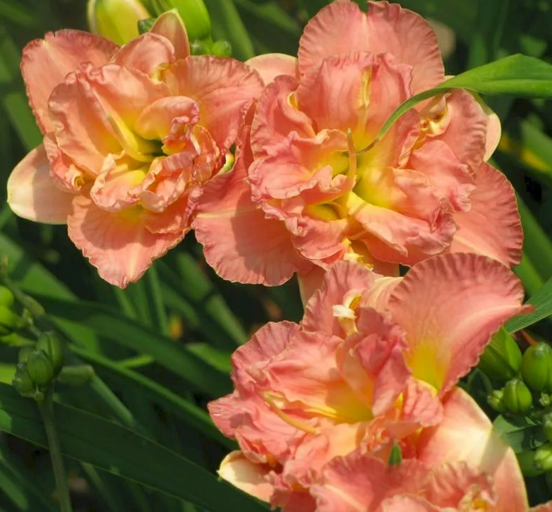 Саженцы и рассада Лилейника гибридного Лейси Дойли (Hemerocallis Lacy Doily) — это многолетние компактные цветы, которые отличаются необычным цветением и оригинальными расцветками. Цветок состоит из большого количества воздушных лепестков нежно-розового цвета. На них можно рассмотреть желтые, белые и персиковые вкрапления. Края гофрированные, что создает дополнительный эффект легкости. Взрослые цветы достигают не более 50 см в высоту. Они цветут в июле и августе, отличаются повторным цветением. Растения подходят для выращивания в открытом грунте или в теплице, для клумб или для среза. В цветочных композициях они отлично гармонируют с любыми оттенками.
