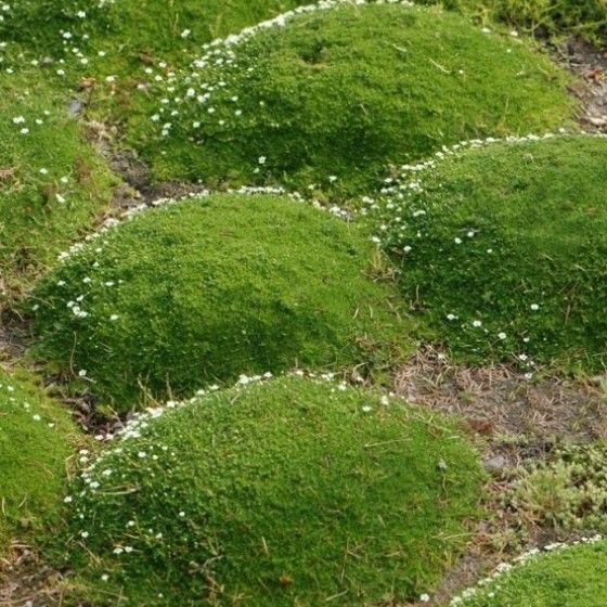 Мшанка шиловидная – высота растения 8 см. Стебли ползучие ветвистые. Растение подушковидное, напоминает мох. В диком виде растет на скалистых участках. Цветение обильное с июля до сентября. Цветы мелкие до 0,5 см. в диаметре белого цвета душистые. Это растение хорошо растет как в тени, так и на солнечных местах. Почвы предпочитает легкие, песчаные, водопроницаемые. Важно помнить, что растение это высаживается на много лет, быстро разрастается и образует сплошной ковер, поэтому перед посадкой участок под посадку необходимо перекопать и выбрать корни многолетних сорняков очень тщательно. Делается это для того чтобы в дальнейшем при прополке не нарушался декоративный вид посадок.