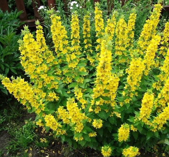 Вербейник точечный — это слабоветвистый многолетник с прямыми побегами, которые образуют высокие заросли, достигающие 70-80 см в длину. Корневая система культуры представляет собой мутовку из нескольких побегов, каждый из которых в летние месяцы увеличивается на 5-10 см. Листья растения яйцевидные, до 8 см в длину, плотно прилегают к стеблям. Соцветия имеют мелкие размеры и звездчато-колокольчатую форму. Цветок вербейника состоит из 5 лепестков золотисто-желтого оттенка с оранжевыми пятнами в центральной части, и его диаметр не превышает 2 см. Они собраны пазушные почки, представляющие собой колос длиной до 40 см. Период цветения вербейника точечного приходится на конец июня и продолжается до полутора месяцев. В это время листья растения практически не видны за ярко-желтыми цветами, поскольку их образуется немалое количество. Если отцветшие части регулярно удаляются, это может привести к повторному цветению в конце сезона, которое будет не таким обильным, как предыдущее. Почва должна быть плодородной и рыхлой, с близким залеганием грунтовых вод. Состав ее при этом не имеет принципиального значения, главное, чтобы содержание глины было не слишком высоким.