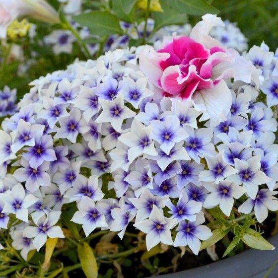 Флокс Друммонда относится к категории однолетних растений. Высота каждого кустика не превышает 50 см. Отличительной чертой этого цветка является обильное цветение фиолетовыми звездочками, собранные в пучки.