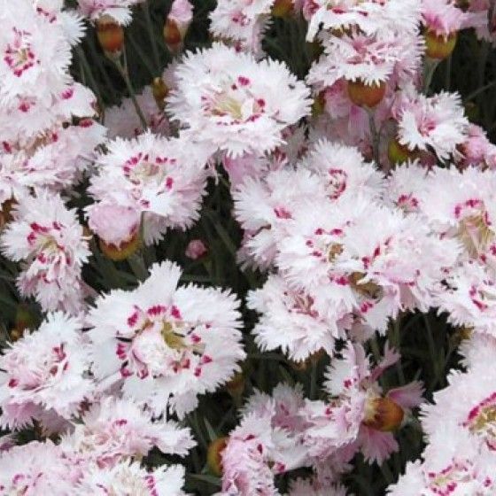 Низкорослые густые кусты перистой гвоздики в июне вспыхивают сияющими душистыми цветами, белого, красного или розового цвета. Цветение обильное и пышное, длится до полутора месяцев.