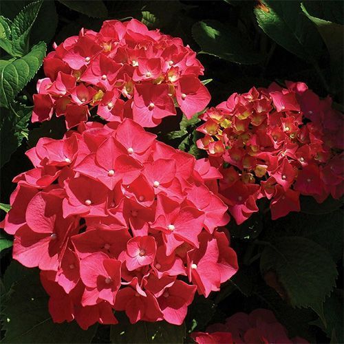 Гортензия Ред Барон крупнолистная (макрофила) - Кустарник раскидистый, вырастает до 1,5 м. Окраска соцветий ярко-красная, зависит от состава почвы. Соцветия округлые 30-35 см. Цветение повторяющееся, стебли сильные, вертикальные. Листья зеленые, заостренные. Рекомендуется мульчирование на зимний период.