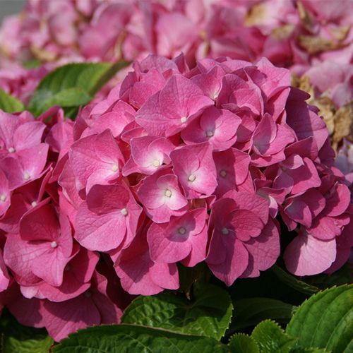 Гортензия крупнолистная Rosita (Розита) – не большой куст, с крупными соцветиями чистого розового цвета, которые при повышении кислотности почвы приобретают синий окрас. Может высаживаться для создания живописной живые изгороди. Цветение: июнь-август. Высота: 1,5 м.