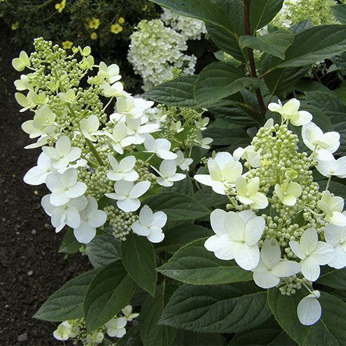 Сорт ‘Mathilde’ — это высокорослое растение, способное быстро развиваться и набирать высоту до 2 м. Побеги ‘Матильды’ темно – вишневого цвета, прочные, вертикально направлены. Листья зеленого цвета, яйцеобразной формы. Соцветия метельчатые, крупные 25 см. Окраска цветков белая переходящая в розовый цвет.